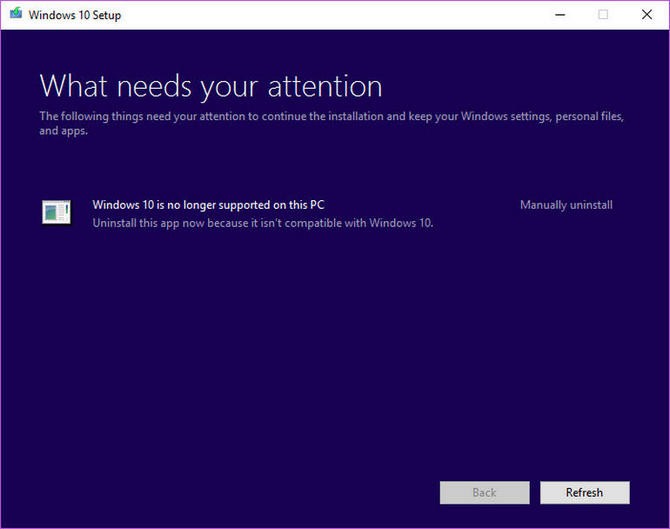 Nếu bạn nằm trong số những người kém may mắn đã mua thế hệ máy tính 2-trong-1 đời đầu (công bố năm 2012 và bán ra từ 2013-2014) thì chắc bạn đã được Microsoft cho nâng cấp miễn phí lên Windows 10 vào giữa 2015, và tiếp đó là bản cập nhật Anniversary (1607) vào mùa hè năm 2016. Tuy nhiên, nếu bạn cố cài đặt bản cập nhật Creators Update (1703) hồi tháng 3/2017 thì sẽ nhận được lỗi: "Windows 10 không còn được hỗ trợ trên máy tính này nữa. Gỡ cài đặt cập nhật này vì nó không tương thích với Windows 10".